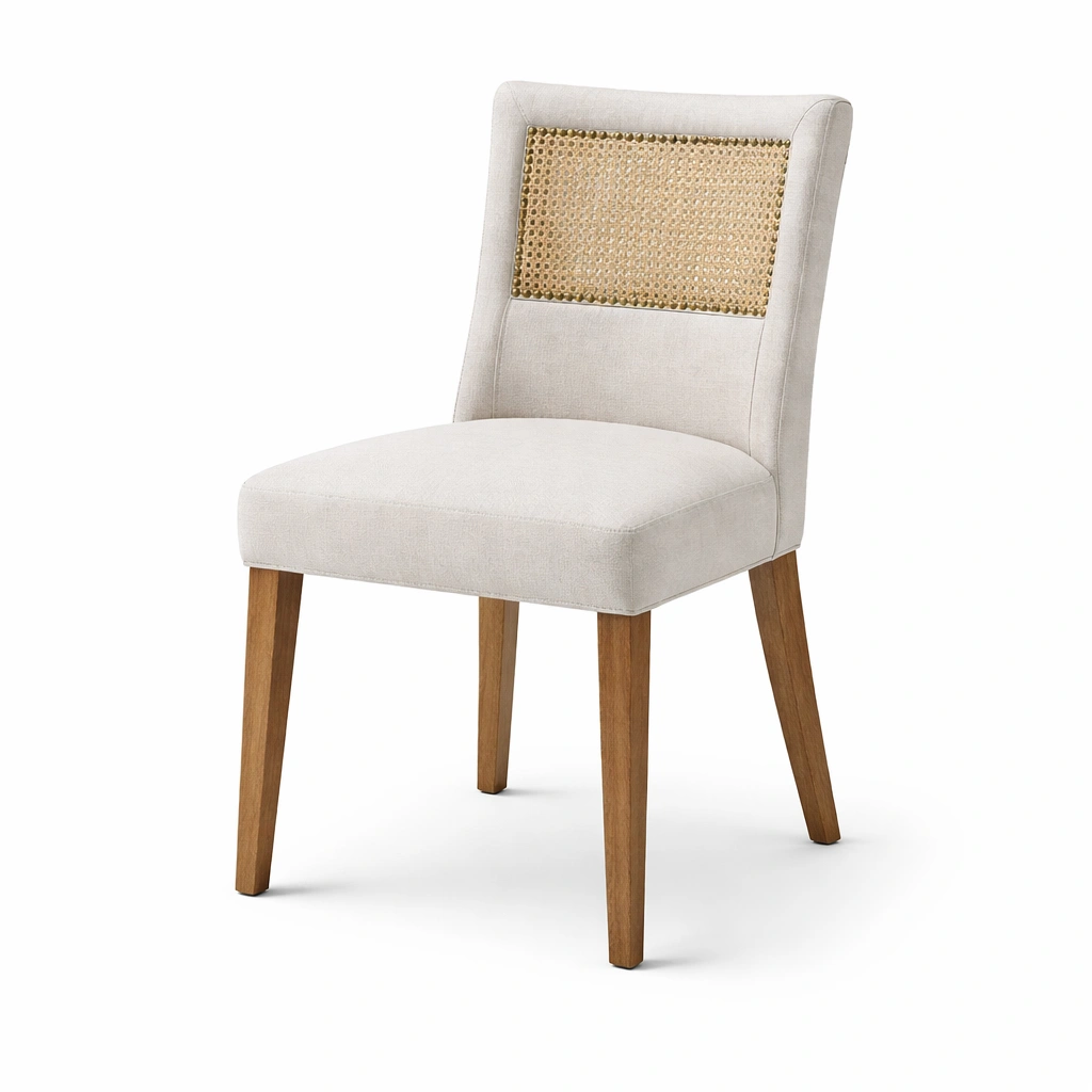 Chaise de salle à manger en bois avec dossier en cannage et assise en tissu beige