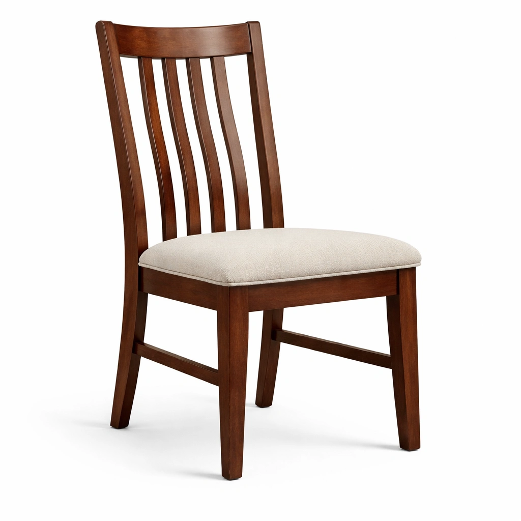 Chaise de salle à manger en bois massif avec assise en tissu crème